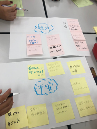 まずは個人作業。ピンクのポストイットには「疑問」、黄色のポストイットには「不安」を思いつくままに書き出していきます。